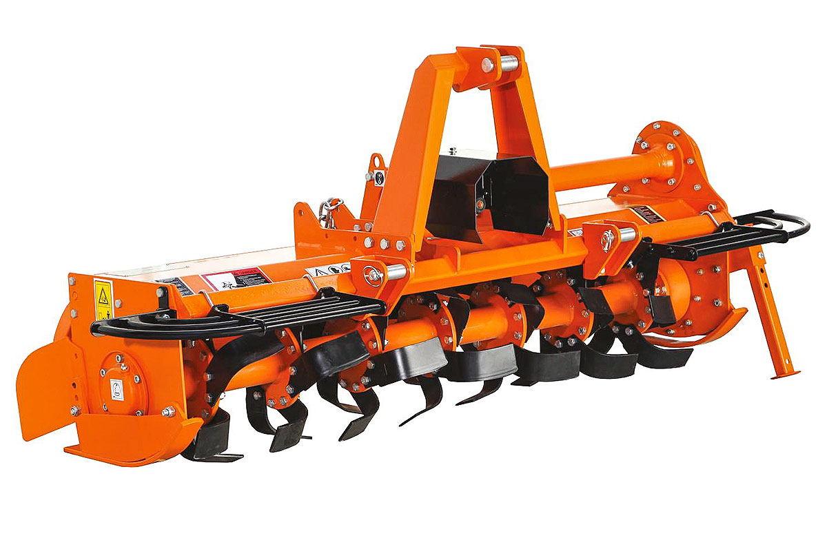 The European designed, Cosmo Bully UL Series Rotary Hoes are gear driven implements for compact and sub-compact tractors up to 40hp. Engineered to till soil in nurseries, vineyards, orchards and hobby farms, they are ideal for owner operators. The rotor features six (6) C shaped, heat treated blades (per flange) in a speed configuration. The speed configuration, a design where the blades are slightly staggered from flange to flange, reduces the horsepower required to produce a fine finish in a variety of soil conditions.