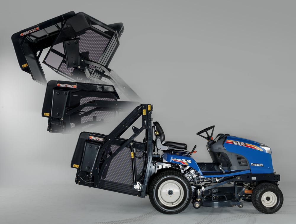The Iseki SXG326 is a compact, low-maintenance, and affordable ride-on mower designed to handle all terrains and weather conditions. As the smallest model in the Iseki range, this mower is engineered in Japan to meet Iseki’s high-quality standards. Powered by a durable Iseki diesel engine, the SXG326 ensures long-term reliability and efficient performance. The SXG326 prioritizes operator comfort with its spacious platform design, allowing for easy maneuverability and reducing operator fatigue. Maintenance is made hassle-free with straightforward access to the engine, ensuring that routine servicing is quick and simple. 1. Integrated Hydraulic Catcher